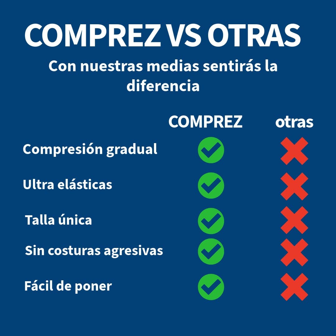 Las medias COMPREZ promueven una correcta circulación de retorno al corazón, evitando la acumulación de sangre y líquido en las piernas que generan trombos.